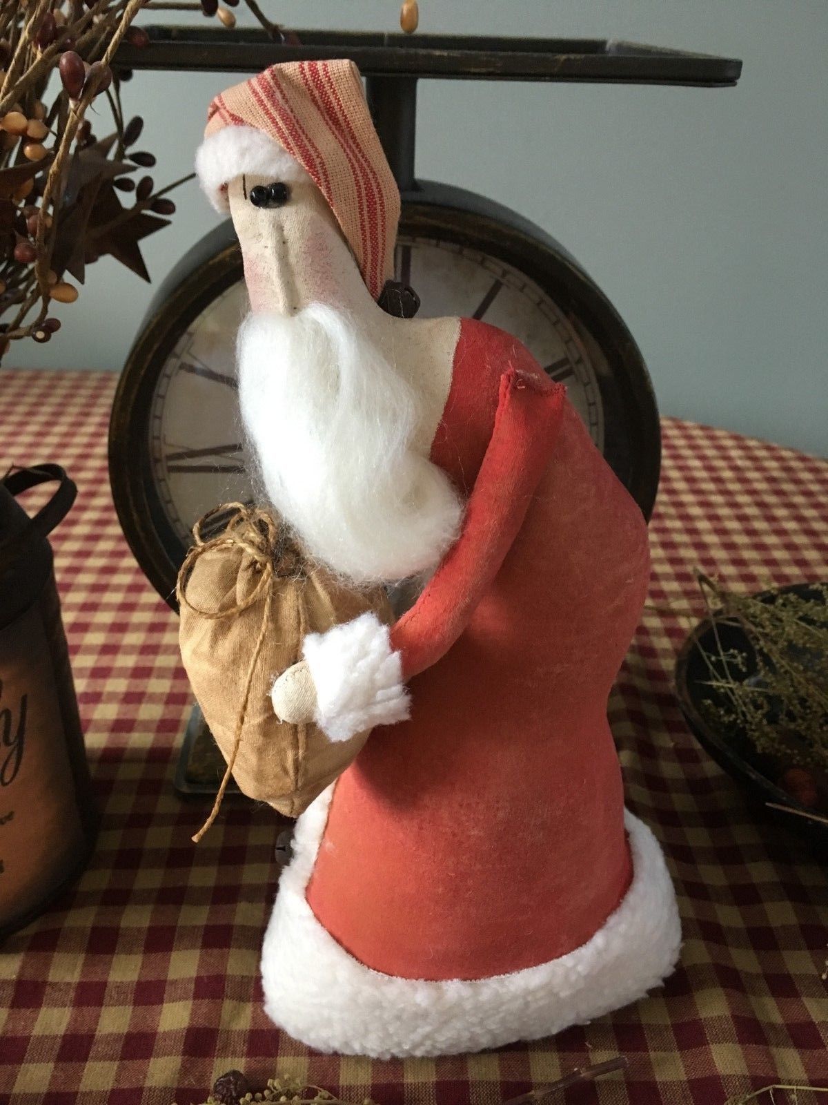 Primitive* Hand-crafted* Crooked Santa w/Sack* Shelf Sitter* Ornies* Christmas
