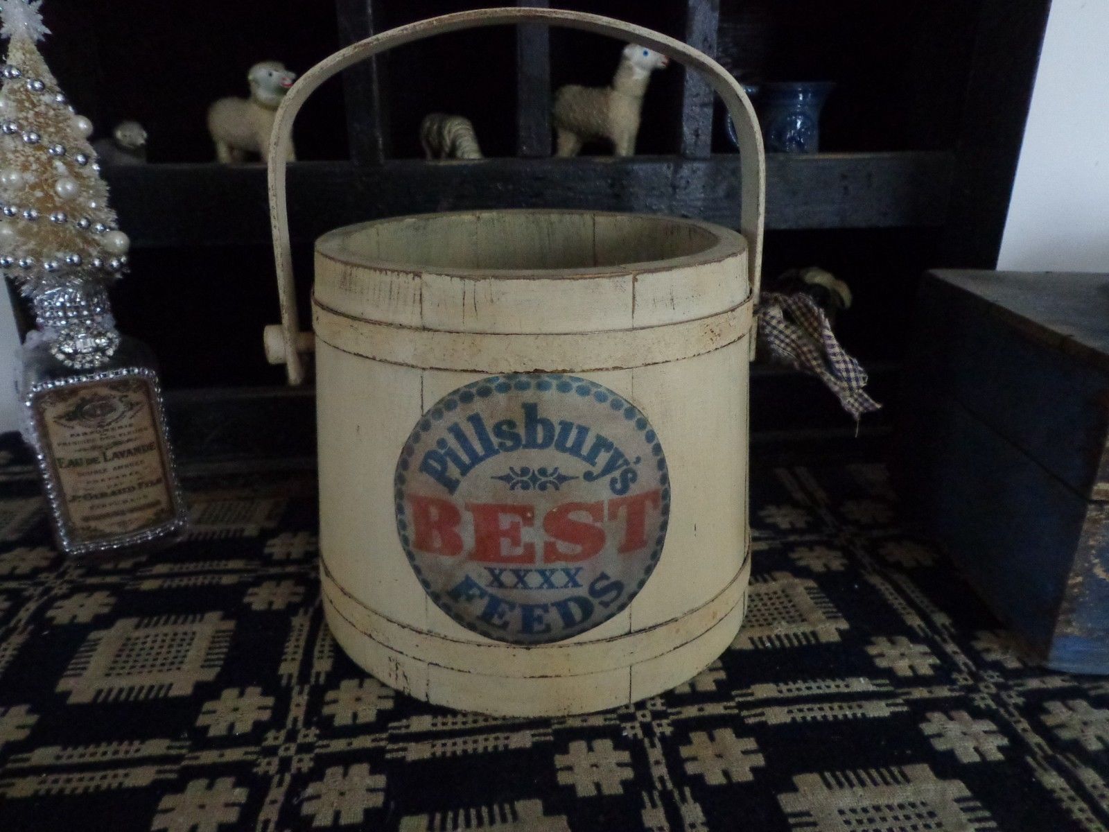 Title (ebay affiliate link): Primitive Antique Vtg Firkin Sugar Farm bucket in chippy paint old style Label