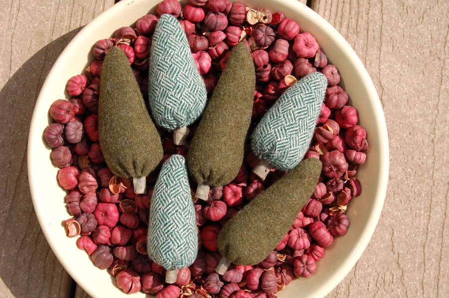 Primitive Wool Christmas Tree Ornies, Bowl Fillers