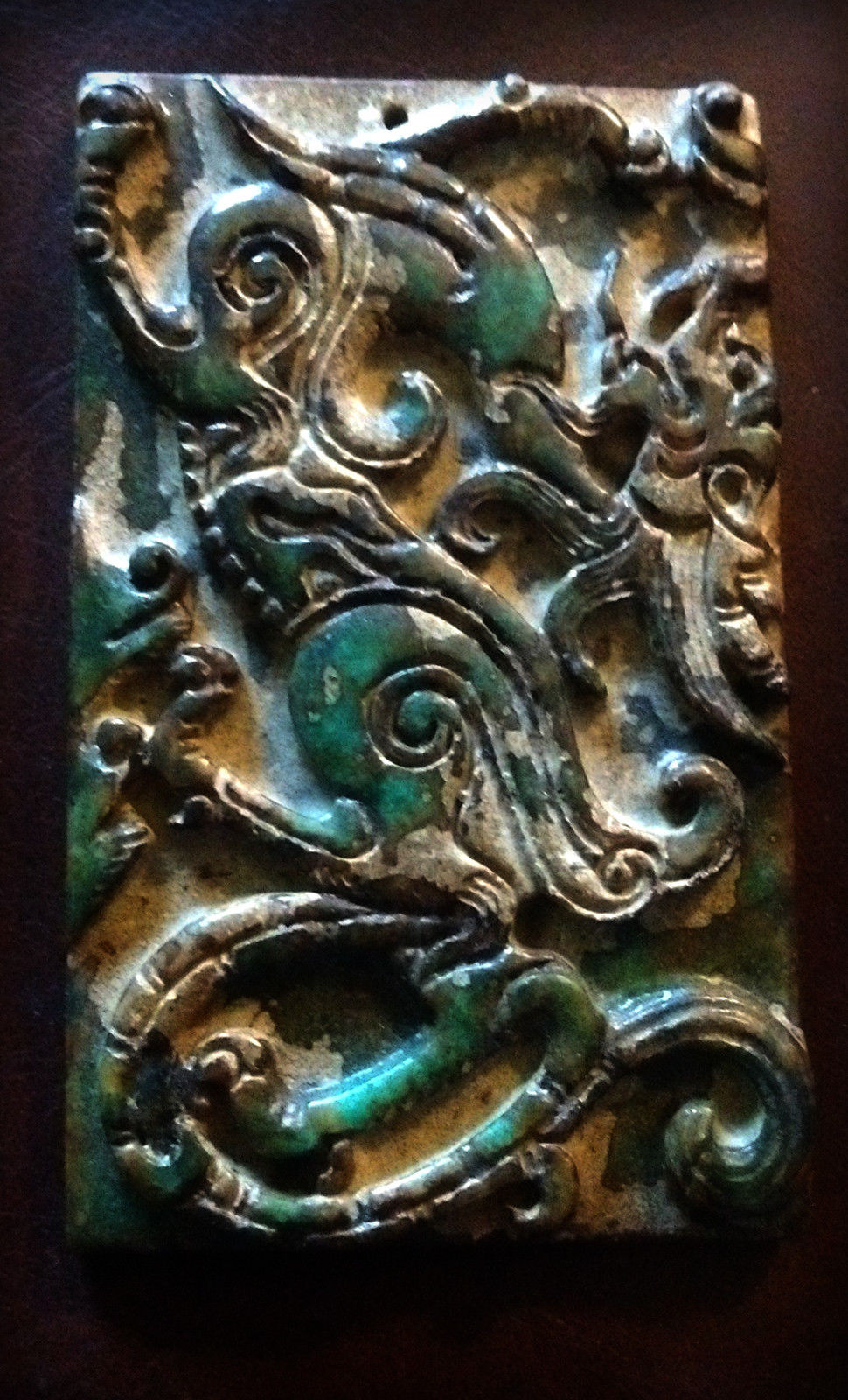Old Antique Green Jade Dragon Carving Intricate