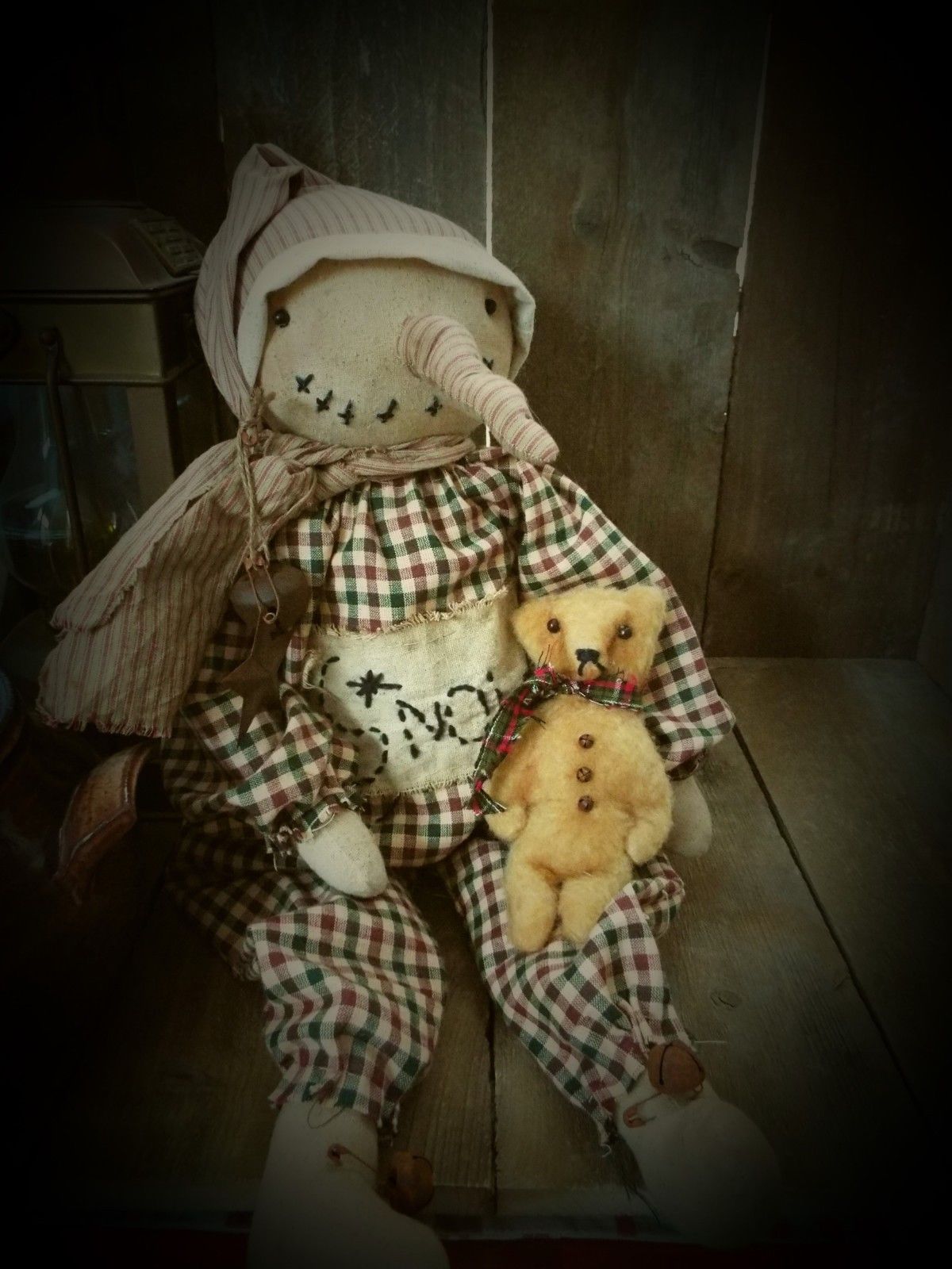 Title (ebay affiliate link): Primitive Grungy Snowman Doll Christmas/Winter Sitter Snowmen
