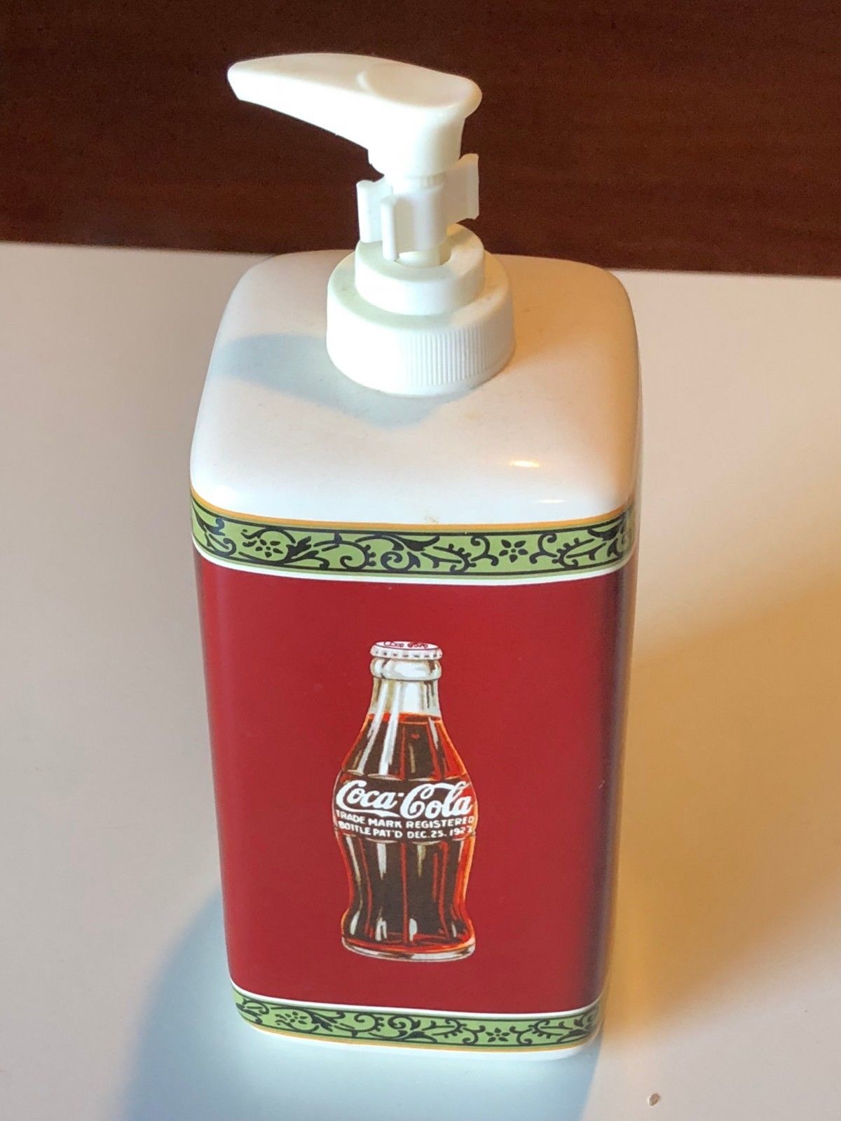 Title (ebay affiliate link): Coca-Cola Square Red & Green Ceramic Lotion Bottle Or Soap Pump Dispenser