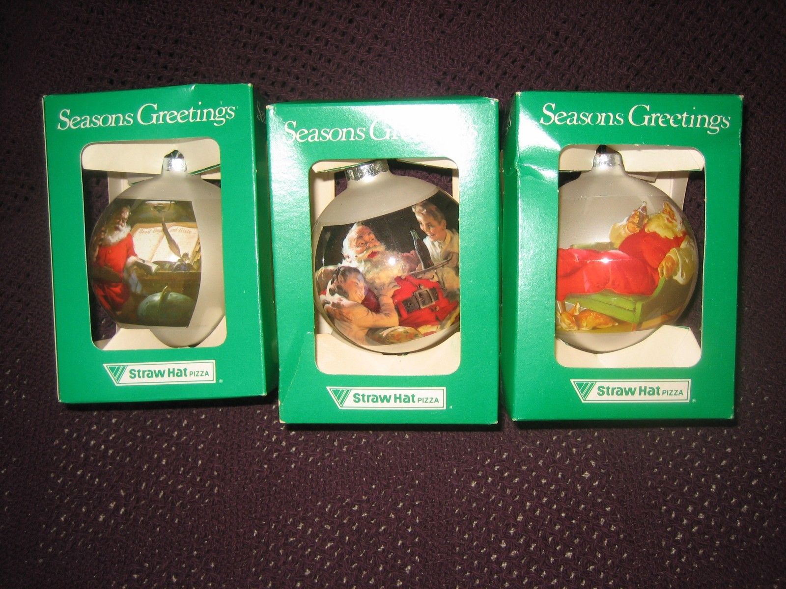 Coca Cola Christmas Ornaments, Straw Hat Pizza Promos, Sundblom Santas