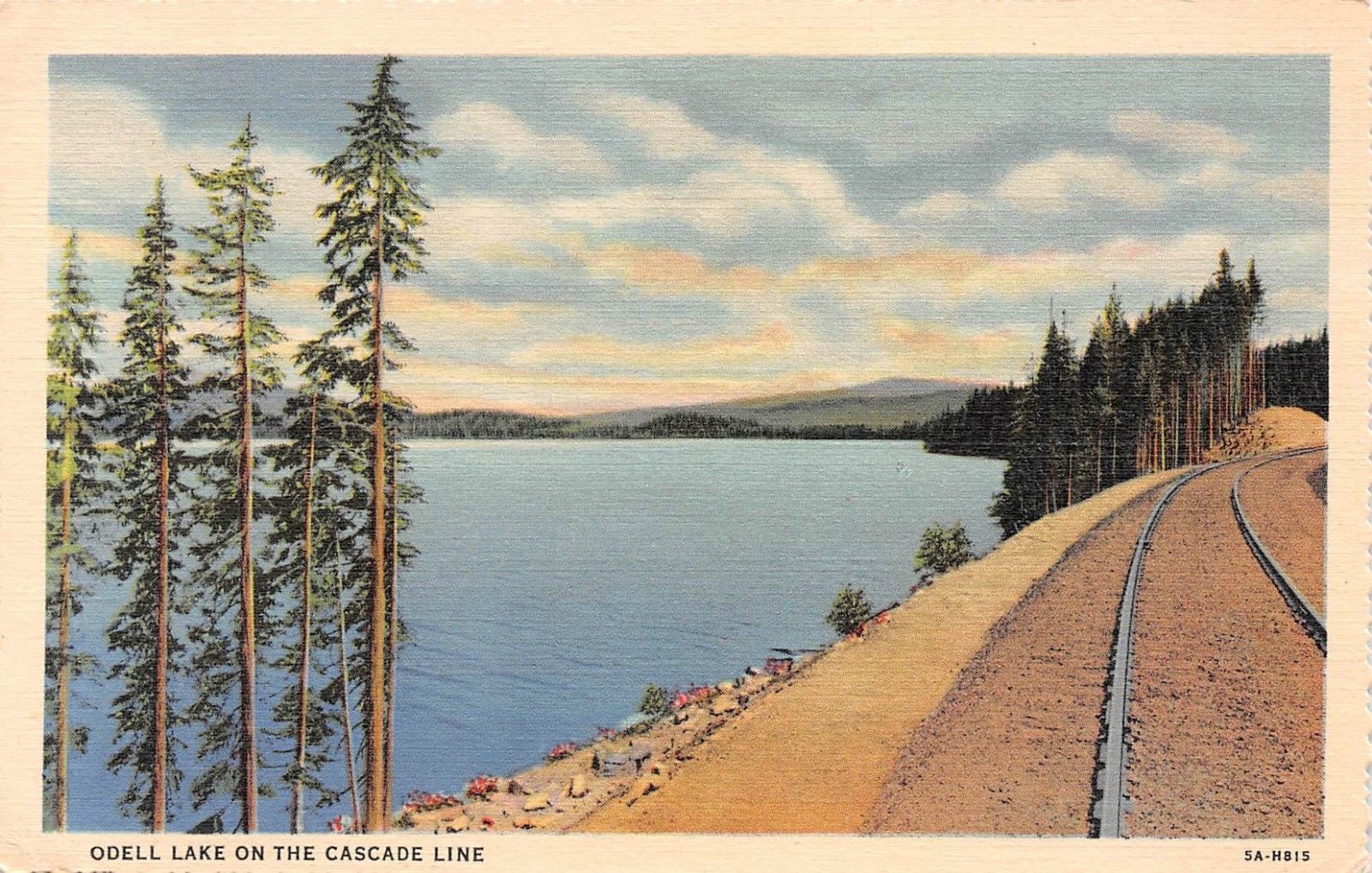 C0396 Odell Lake on the Cascade Line CA - 1935 Curt Teich Linen Postcard