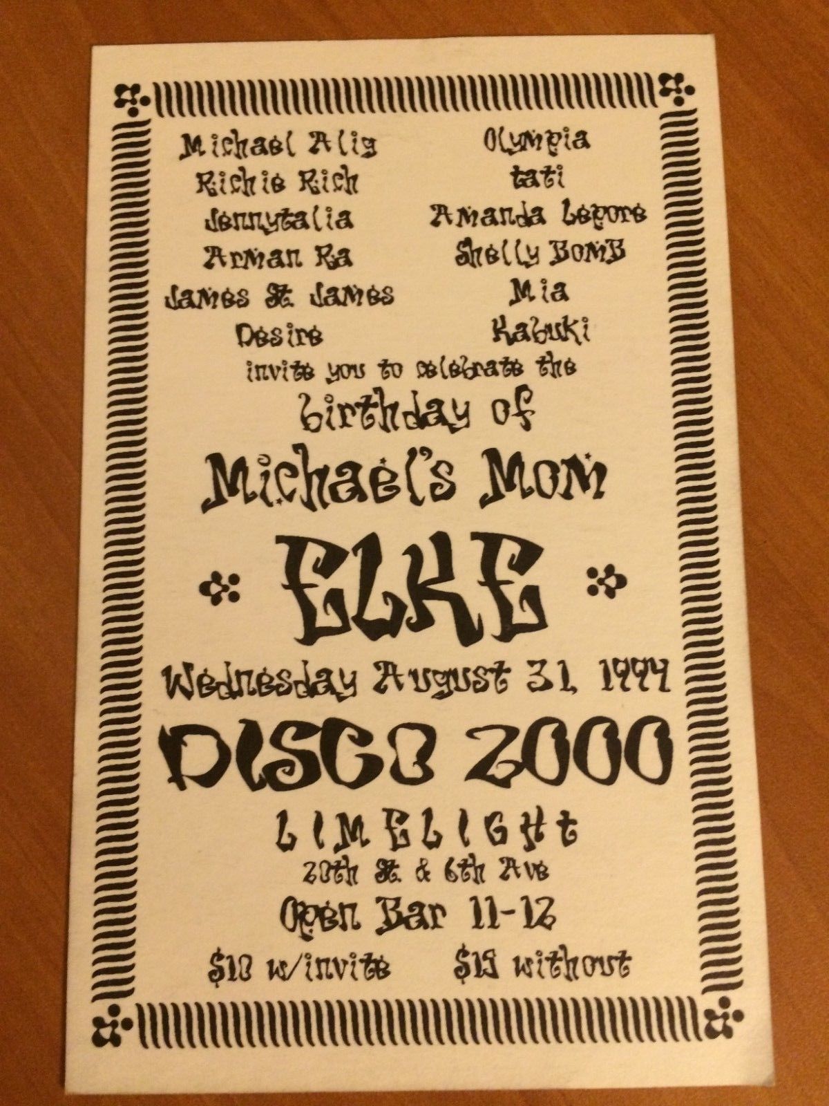 Title (ebay affiliate link): Michael Alig Club Kid Party Monster Mom Elke Alig Birthday Party Disco 2000