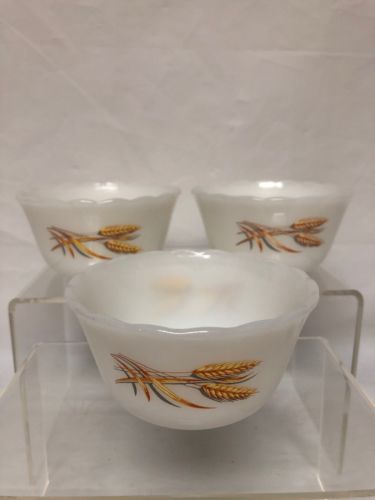 Title (ebay affiliate link): 3 Vintage Fire King Milk Glass Custard Cups Or Ramekins Golden Wheat Pattern