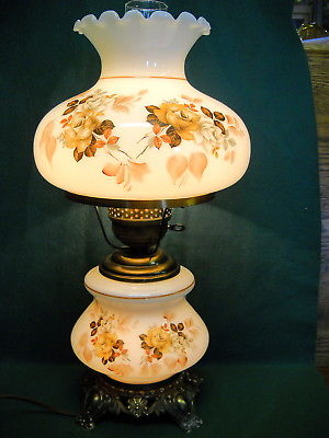 Title (ebay affiliate link): VINTAGE MILK GLASS ROSE DESIGN GONE WITH THE WIND LAMP WORKING
