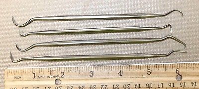 SET OF 4 DOUBLE ENDED STAINLESS DENTAL PICKS PRECISION JEWELERS CLEANING TOOLS