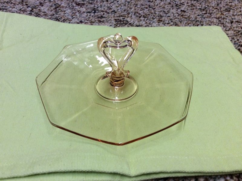 Title (ebay affiliate link): Vintage pink center heart handle octagon depression glass cookie pastry tray