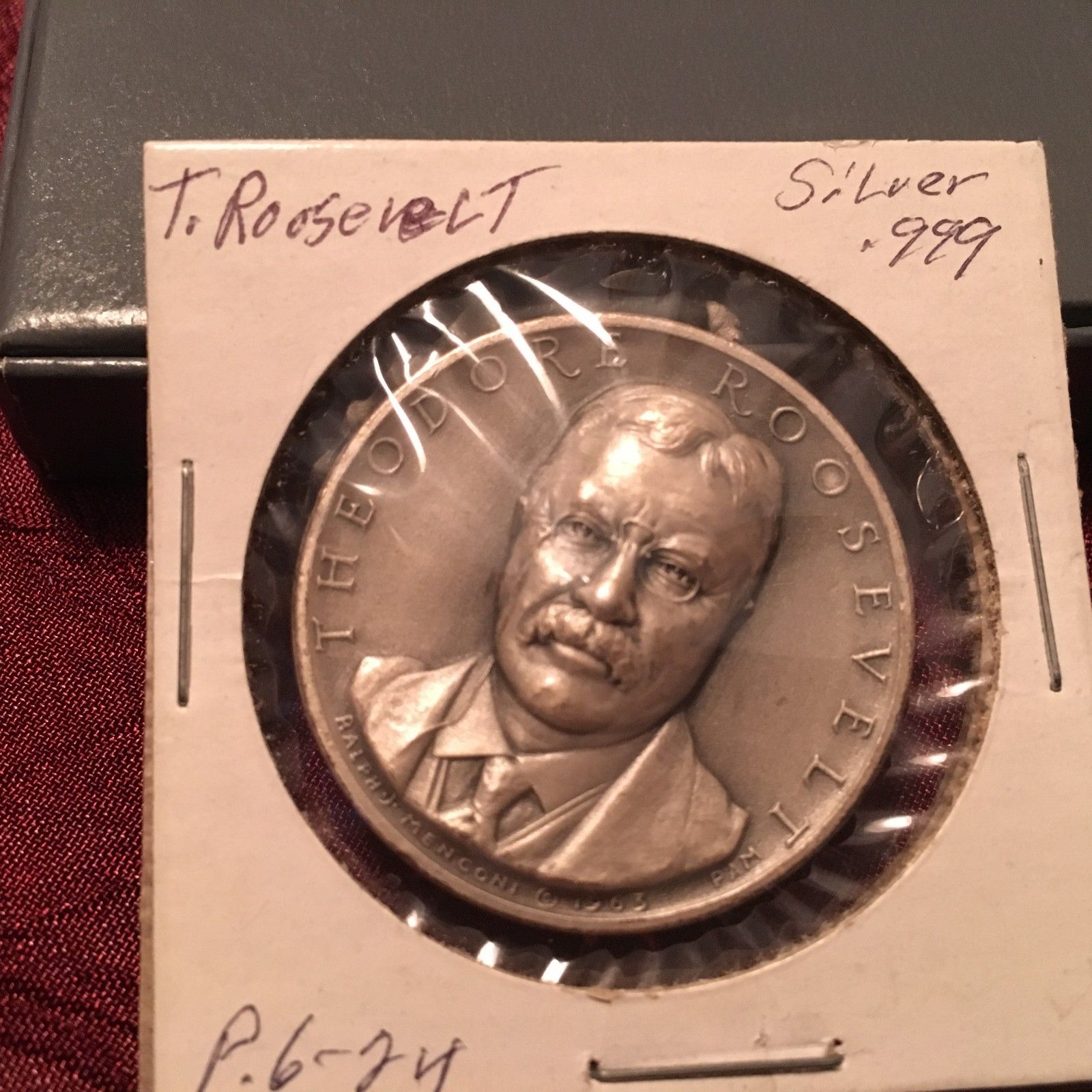 Title (ebay affiliate link): Medallic Art Presidential Silver Medal - Theodore Teddy Roosevelt - 0.999 Oz. Si