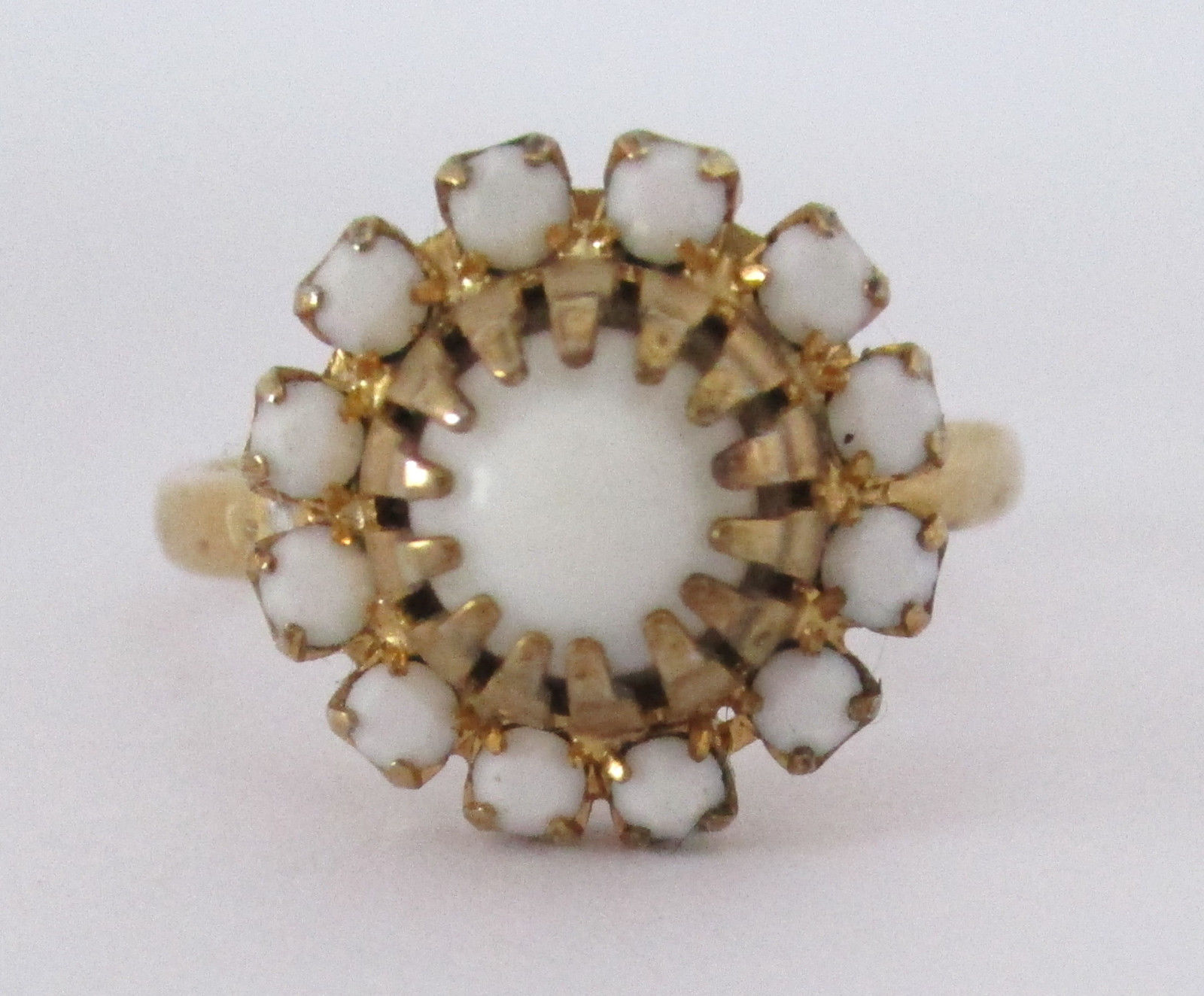 Vintage Milk Glass Rhinestone Ring