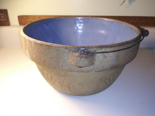 Title (ebay affiliate link): RARE LARGE MOON FAN ANTIQUE PRIMITIVE STONEWARE BOWL BALE WIRE HANDLE 12IN.