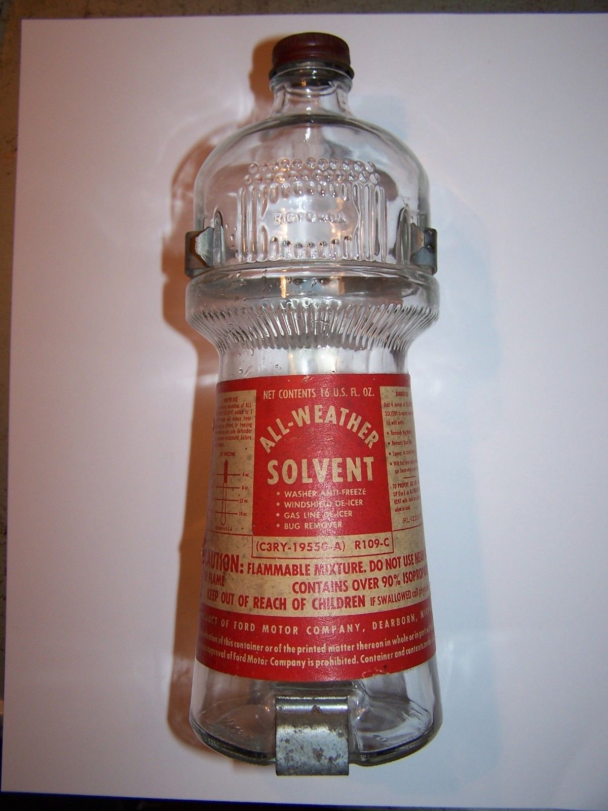 Title (ebay affiliate link): Antique Vintage Ford Motor Company All-Weather Solvent 16 oz Glass Bottle, empty