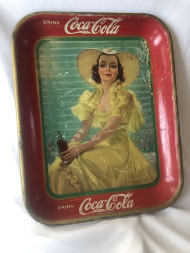 Title (ebay affiliate link): ORIGINAL VINTAGE 1938 COCA-COLA COKE SODA GIRL IN YELLOW DRESS TRAY