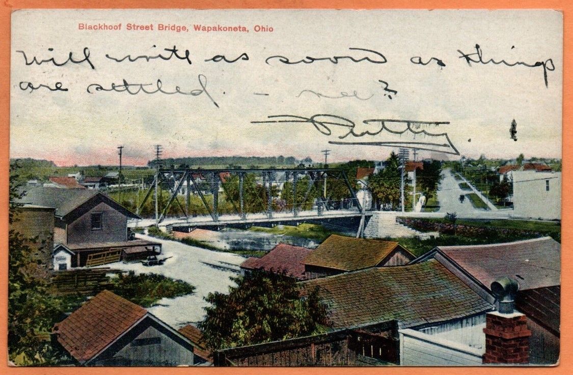 Title (ebay affiliate link): OH Ohio Wapakoneta Blackhoof Street Bridge Scene Auglaize County Postcard