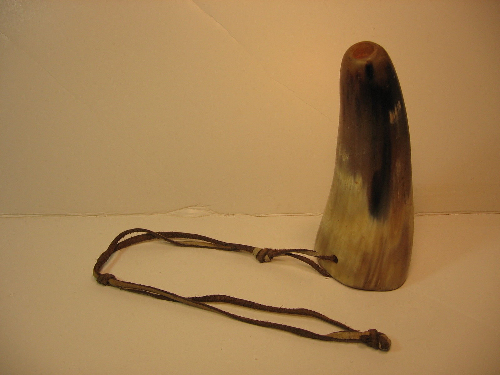 Title (ebay affiliate link): VINTAGE HAND MADE COW HORN FUNNEL WITH LEATHER THONG