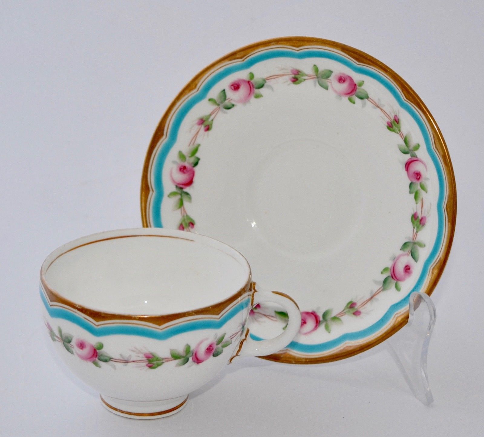 Antique SPODE Tea Cup and Saucer Set #1687 - Garland of Roses