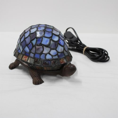 Title (ebay affiliate link): Stained Glass Tiffany Style Leadlight Brass Turtle Table Lamp Working Blue #908