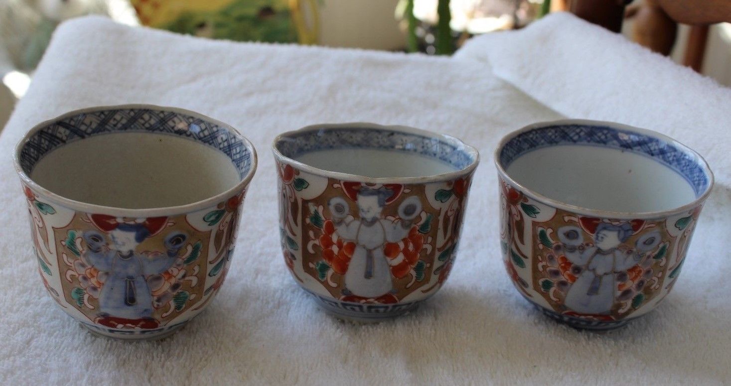 THREE SETS OF IMARI PRE WAR CUPS AND SAUCERS