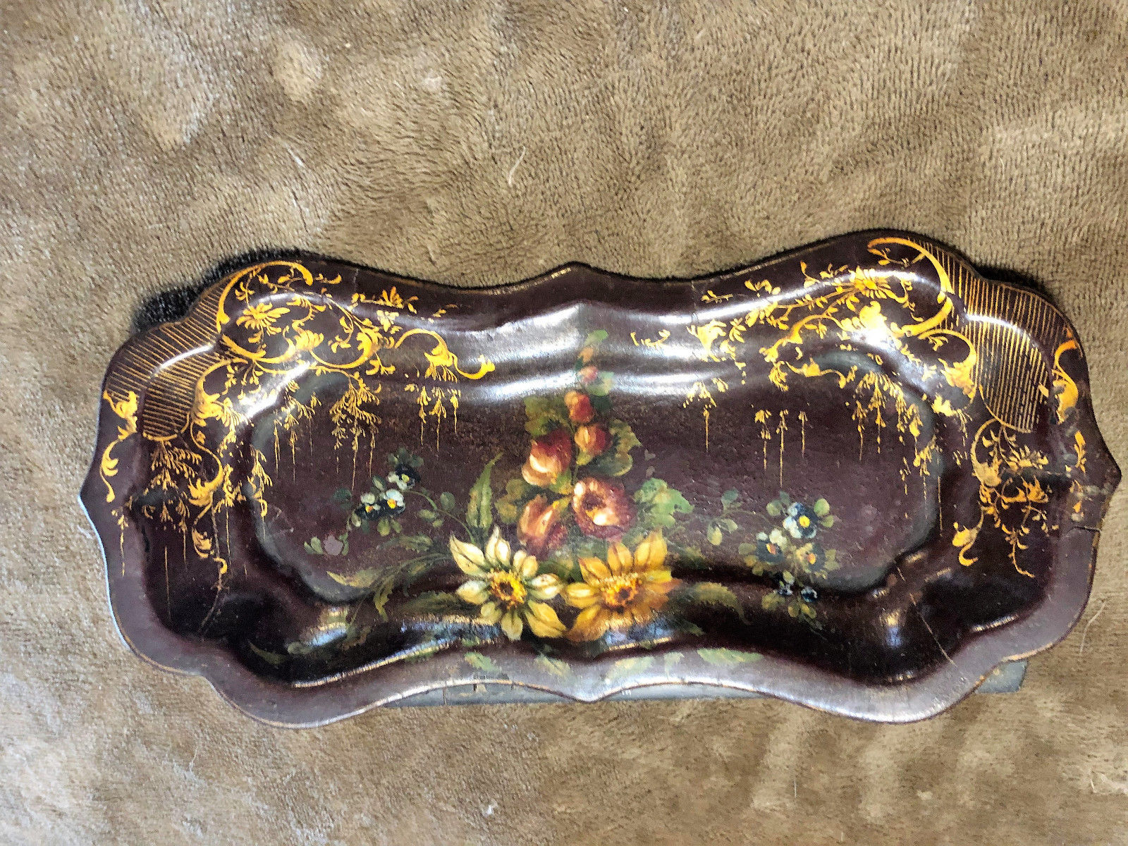 Antique Paper Mache Tray with Floral Decorations
