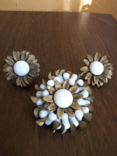 MIRIAM HASKELL MILKGLASS PIN BROOCH AND EARRING SET