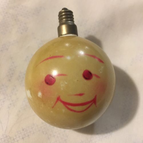 Vtg Antique Christmas Milk Glass Figural 2-Sided Happy Face Light Bulb