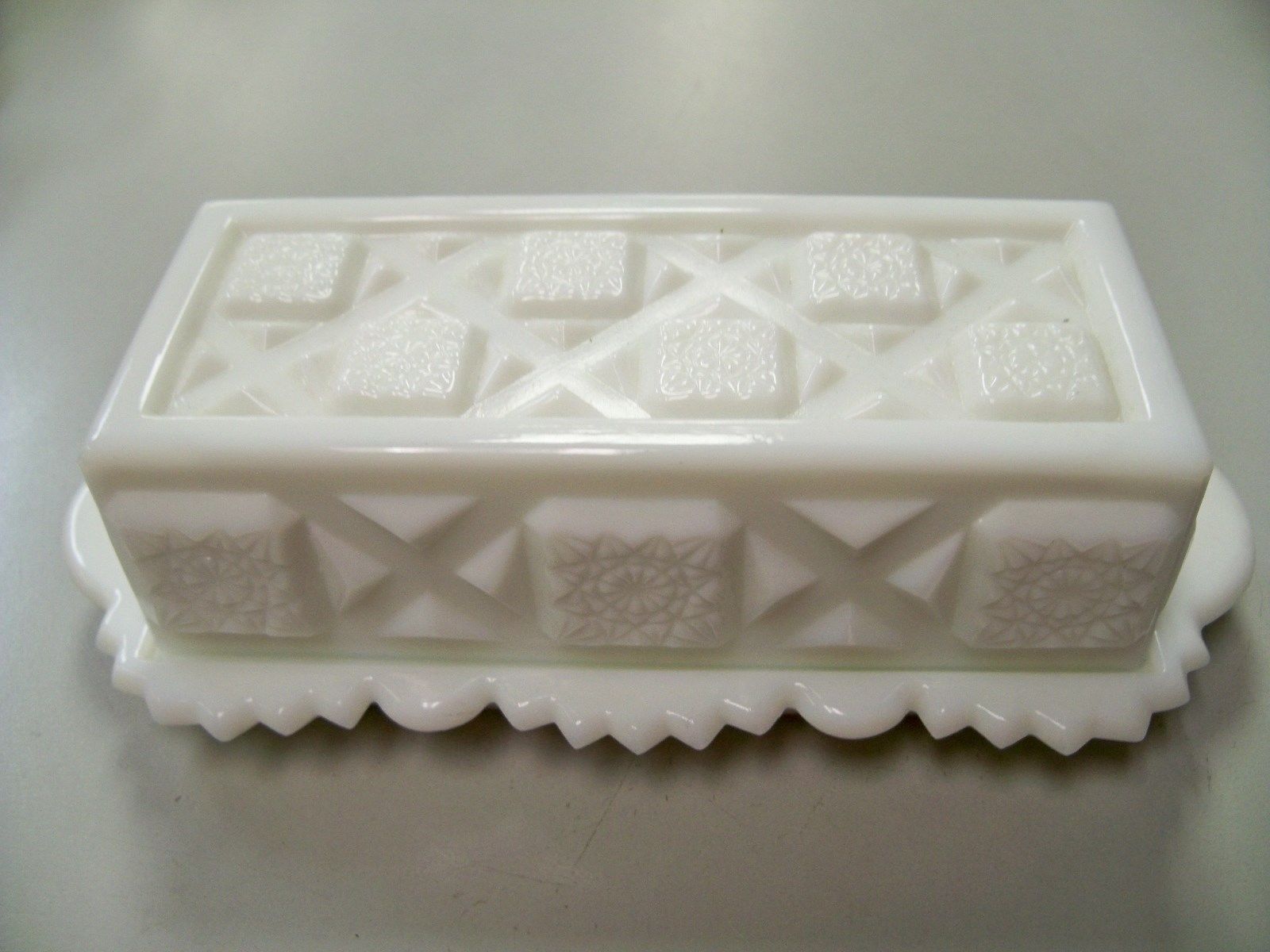Westmoreland Milk Glass Old Quilt Butter Dish