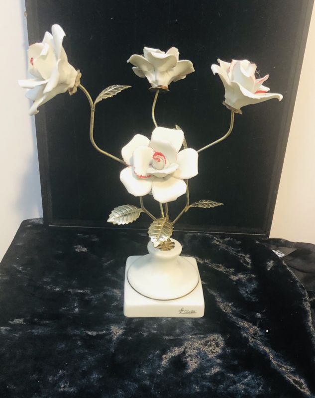Title (ebay affiliate link): VTG Gorgeous Capodimonte Arrangement With Brass/Metal Leaves and Vines 4 ROSES