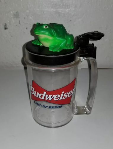 Title (ebay affiliate link): 90''S BUDWEISER TALKING BEER STEIN CROAKING FROG "BUD-WEIS-ER" PLASTIC MUG