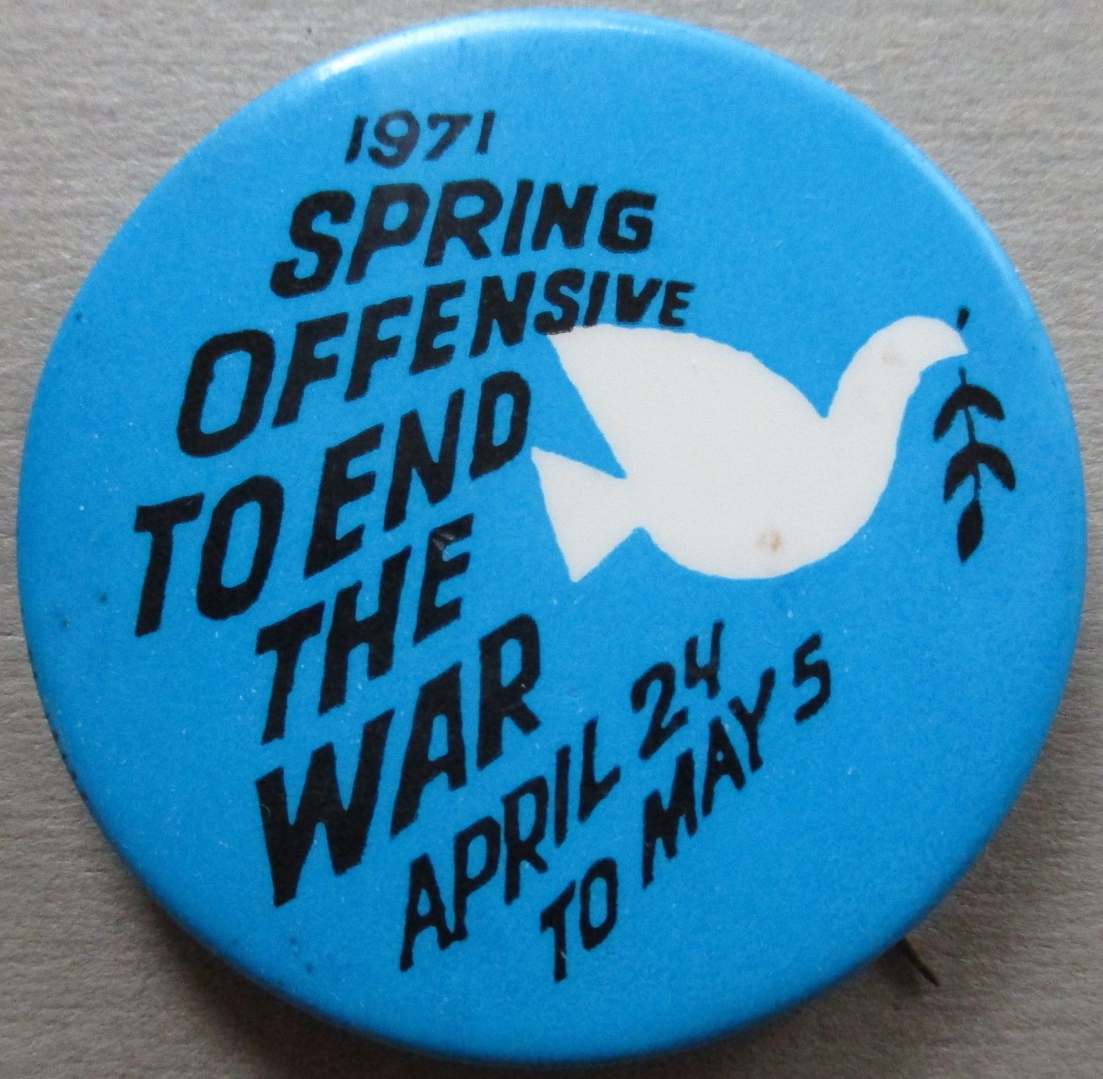Title (ebay affiliate link): Spring Offensive to End the War 1971 Anti Vietnam Peace Protest Pinback Button