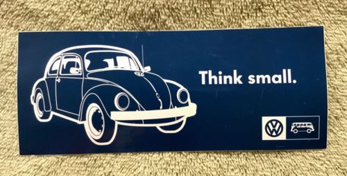 Title (ebay affiliate link): Vintage VW Think Small Bumper Sticker Volkswagen Bug