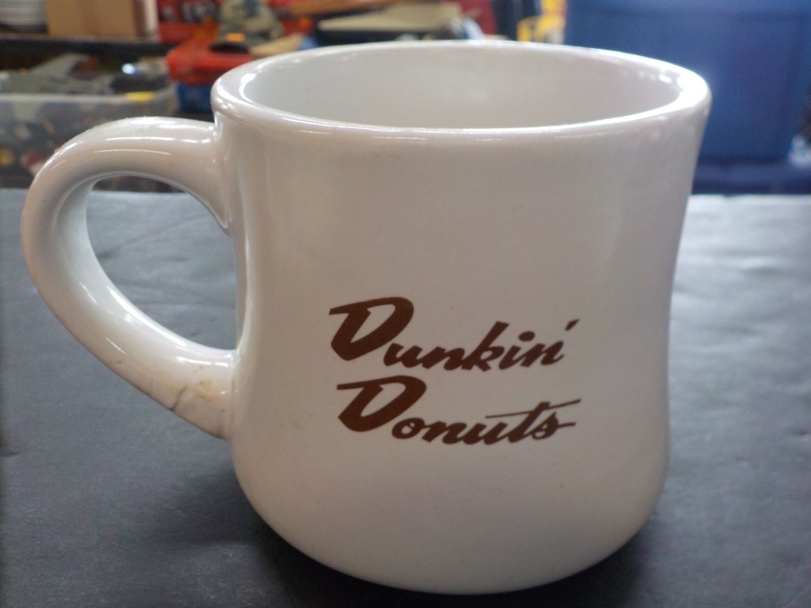 Title (ebay affiliate link): Dunkin'' Donuts White Coffee Mug Donut Man 12 oz Heavy Diner Style Cup