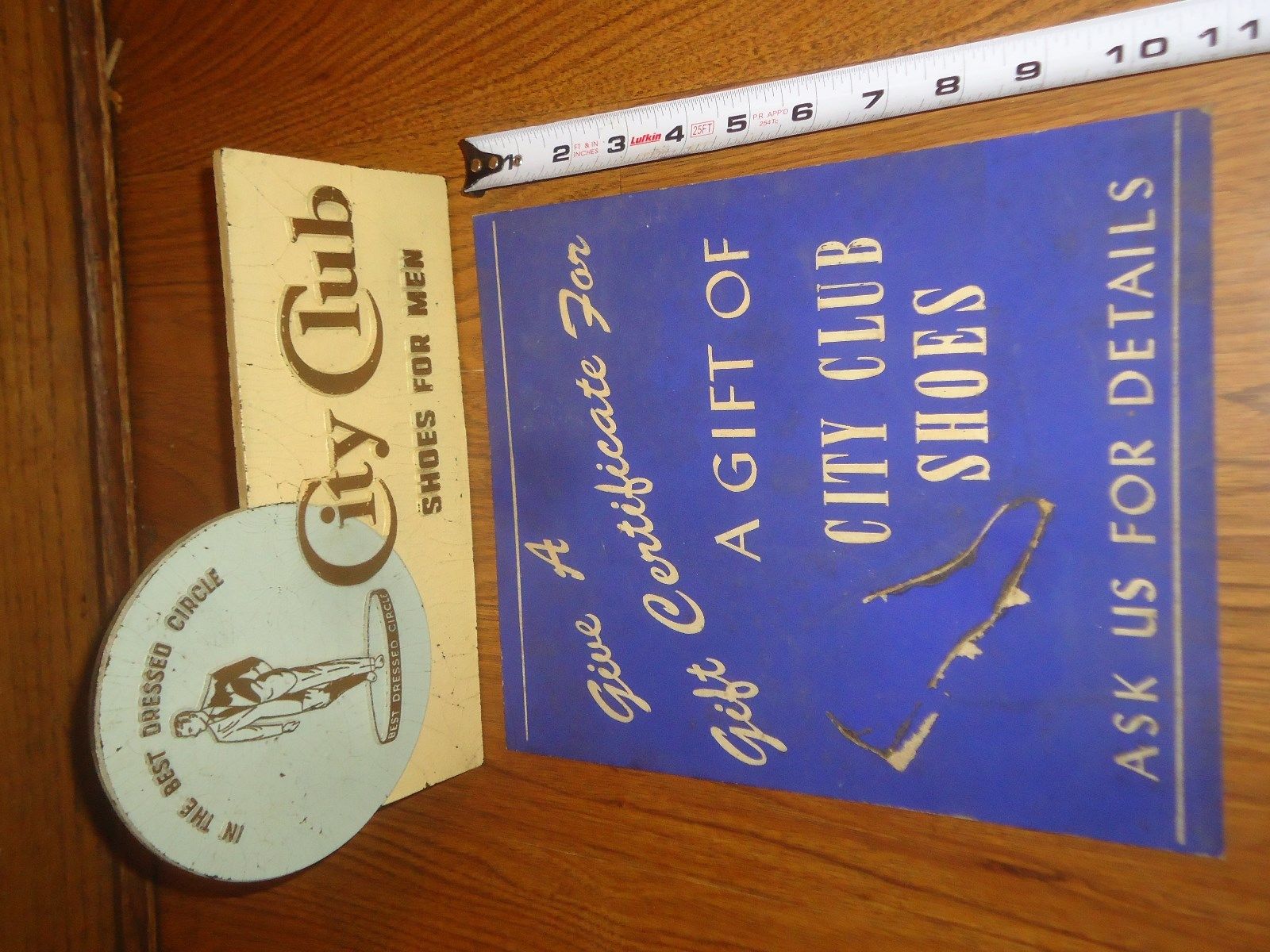 Antique Art Deco Store Shoe Advertisment Mens City Club Composition & Sign