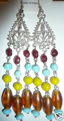 Title (ebay affiliate link): Antique Hippy Glass Bead Indian Dangle Earrings 5"LONG