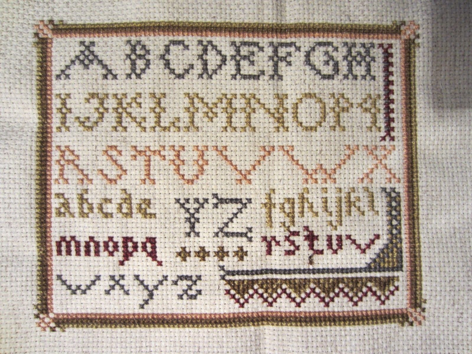 Title (ebay affiliate link): PRIMITIVE FINISHED Cross Stitch Stitchery Alphabet Sampler Colonial Unframed