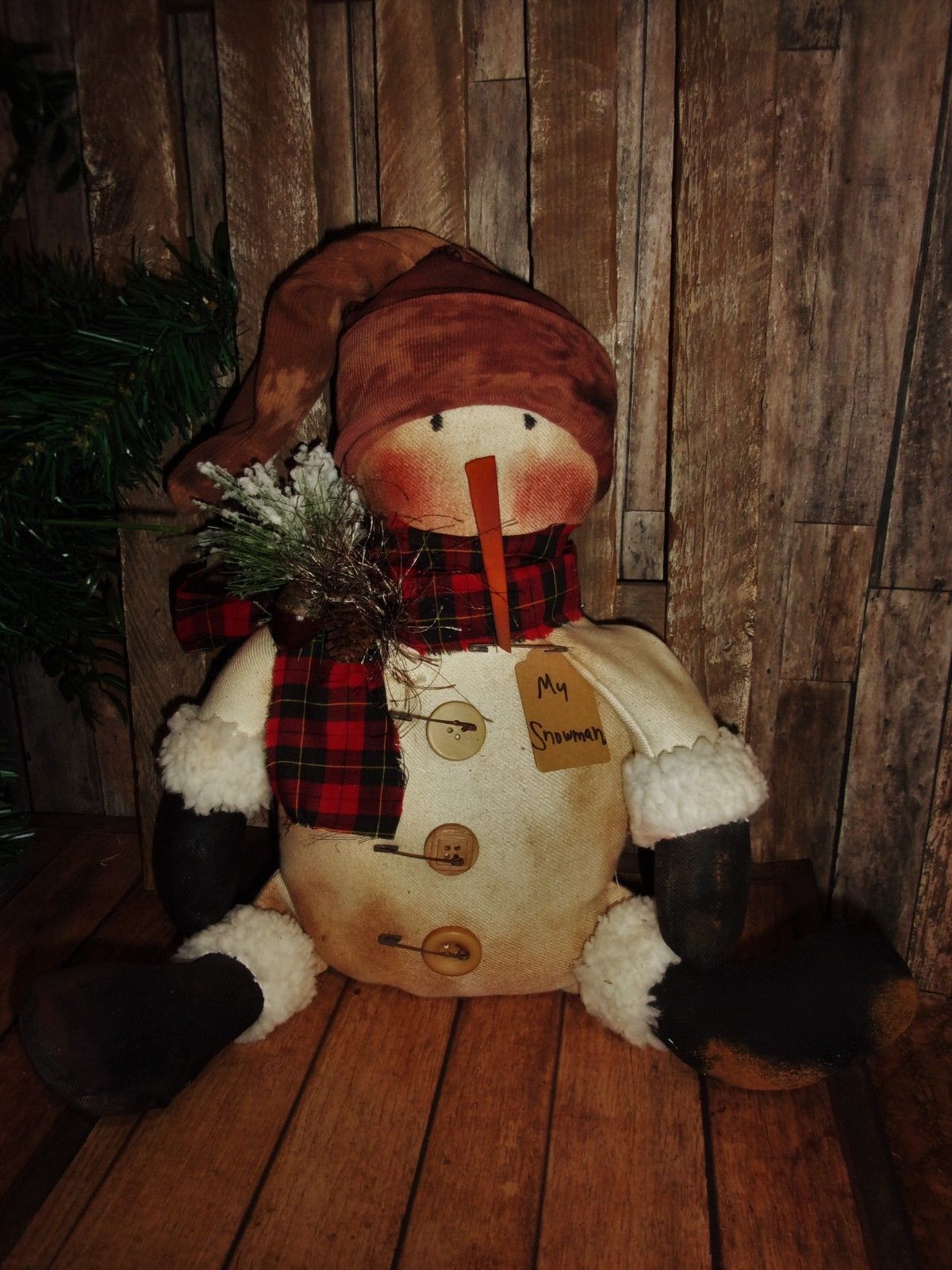 Title (ebay affiliate link): *Primitive 15x10in FAT SITTING SNOWMAN NO BASE Fabric Country old rusty doll*