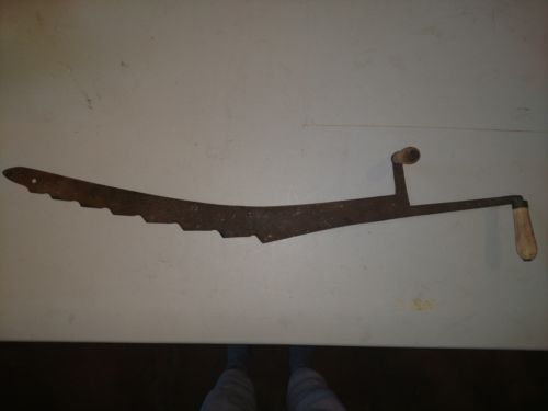 Title (ebay affiliate link): ANTIQUE HAY KNIFE Scythe Sickle 36" Long Wooden Handle Saw. NICE!