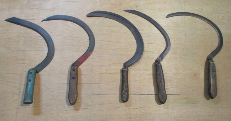 Title (ebay affiliate link): Vtg Lot Antique Hand Scythe Sickle Primitive Farm Tools Wood Handle Curved Blade