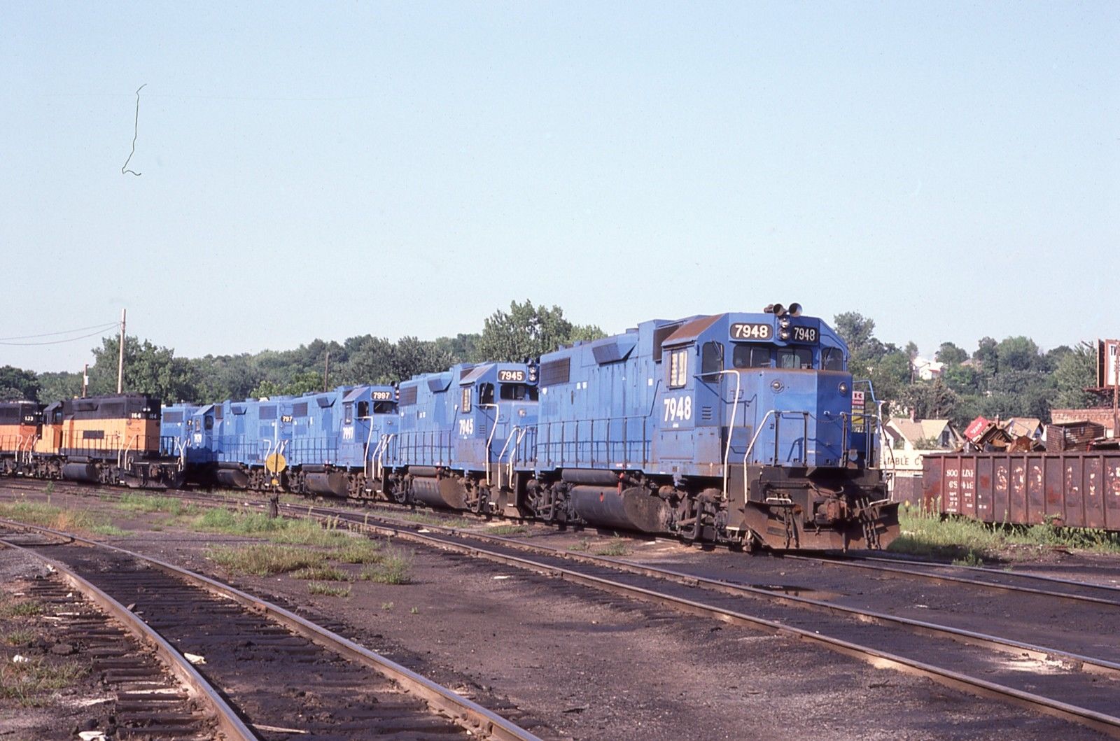 Original Slide EMD Lease - Retired CR Conrail GP38-2 #7948+5 - Shoreham MN 1987