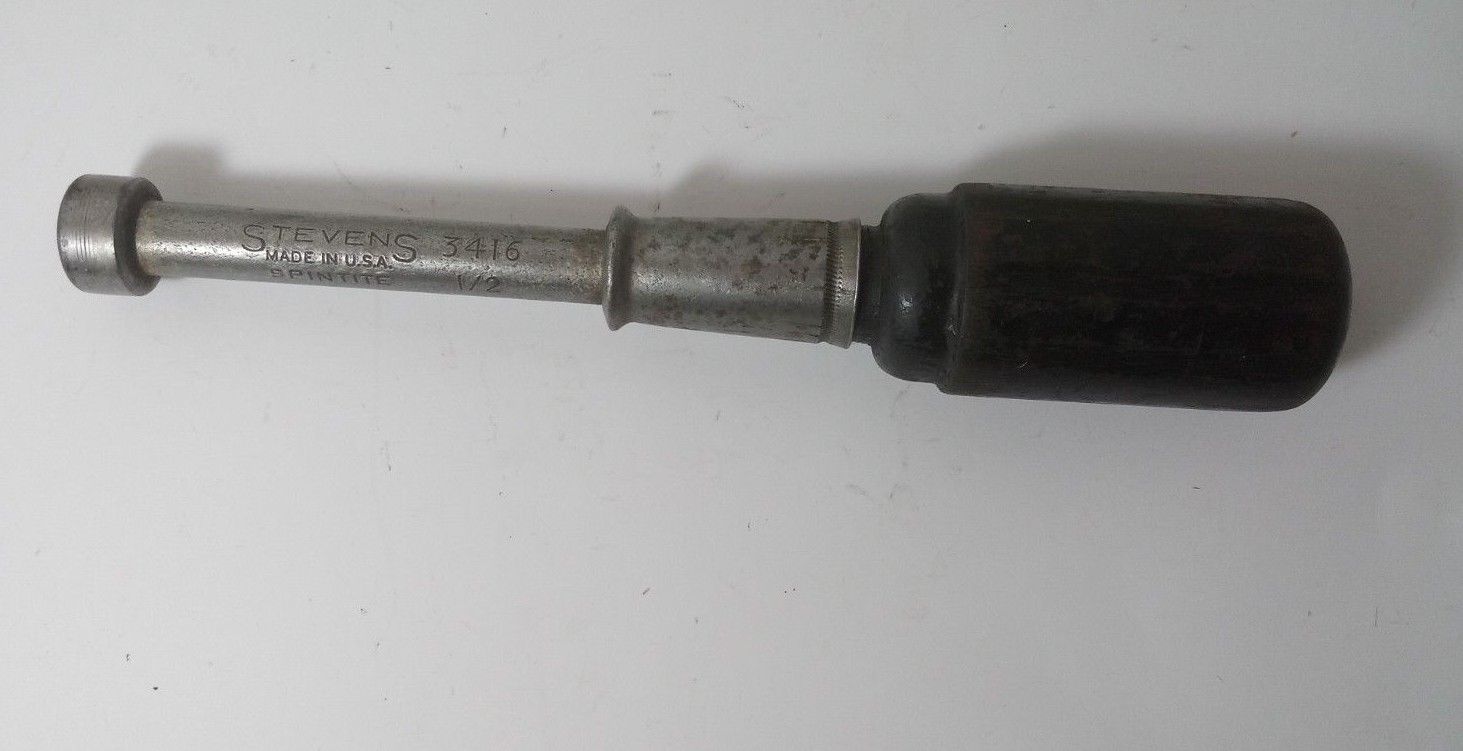 VINTAGE Stevens Walden Spintite Nut Driver 3416 1/2 Made in USA WOOD HANDLE