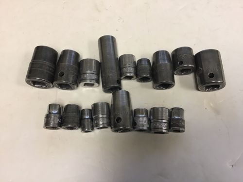 Lot Of 16 Vintage Various Assorted Snap On Sockets - 16 Total 1/4 3/8 1/2 drive