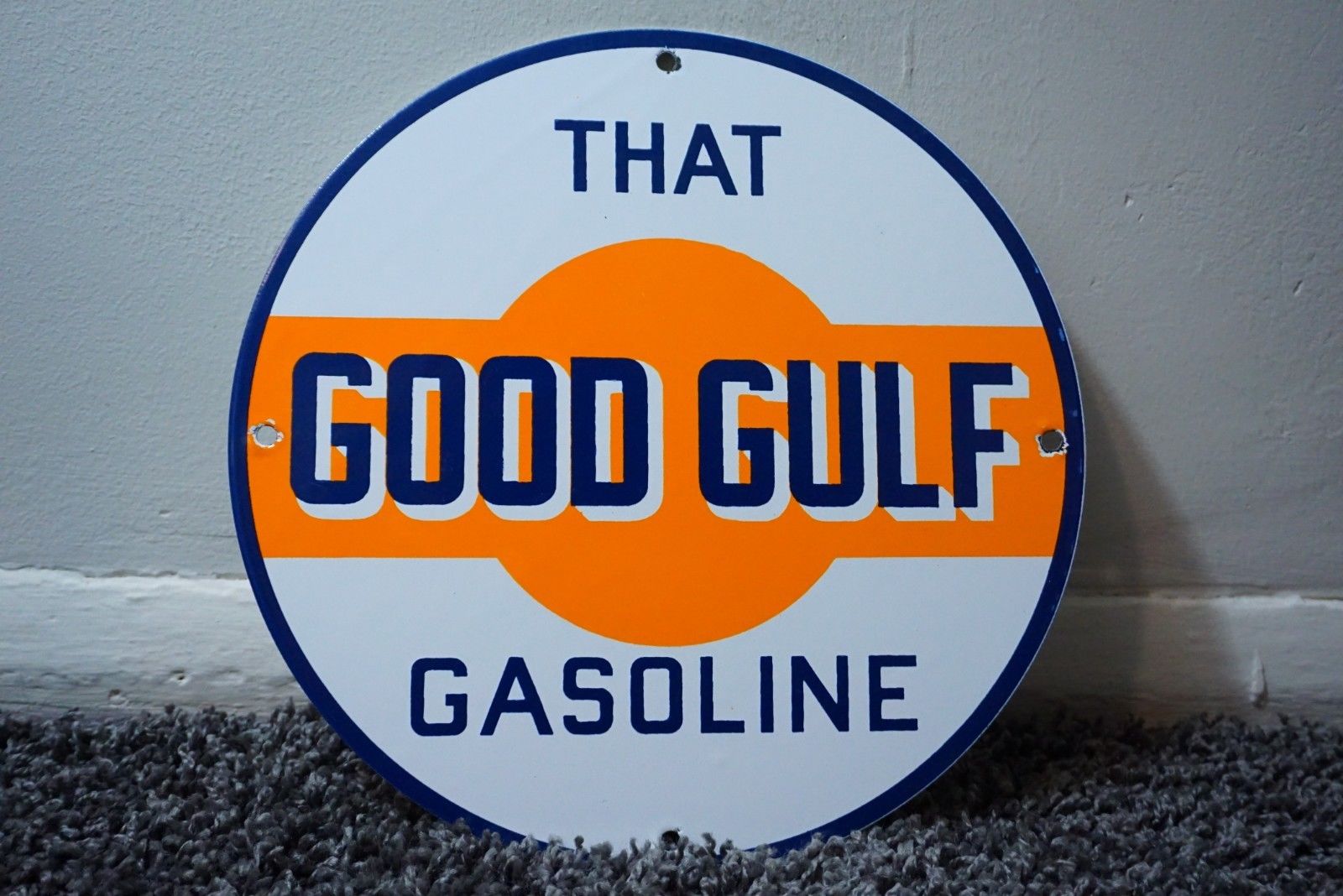 Title (ebay affiliate link): VINTAGE GOOD GULF PORCELAIN METAL SIGN GAS STATION PUMP PLATE MOTOR OIL GASOLINE