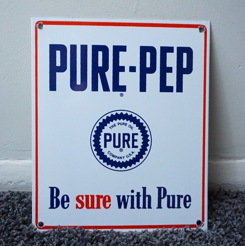 Title (ebay affiliate link): VINTAGE PURE PEP GASOLINE PORCELAIN SIGN GAS SERVICE STATION PUMP PLATE OIL AD
