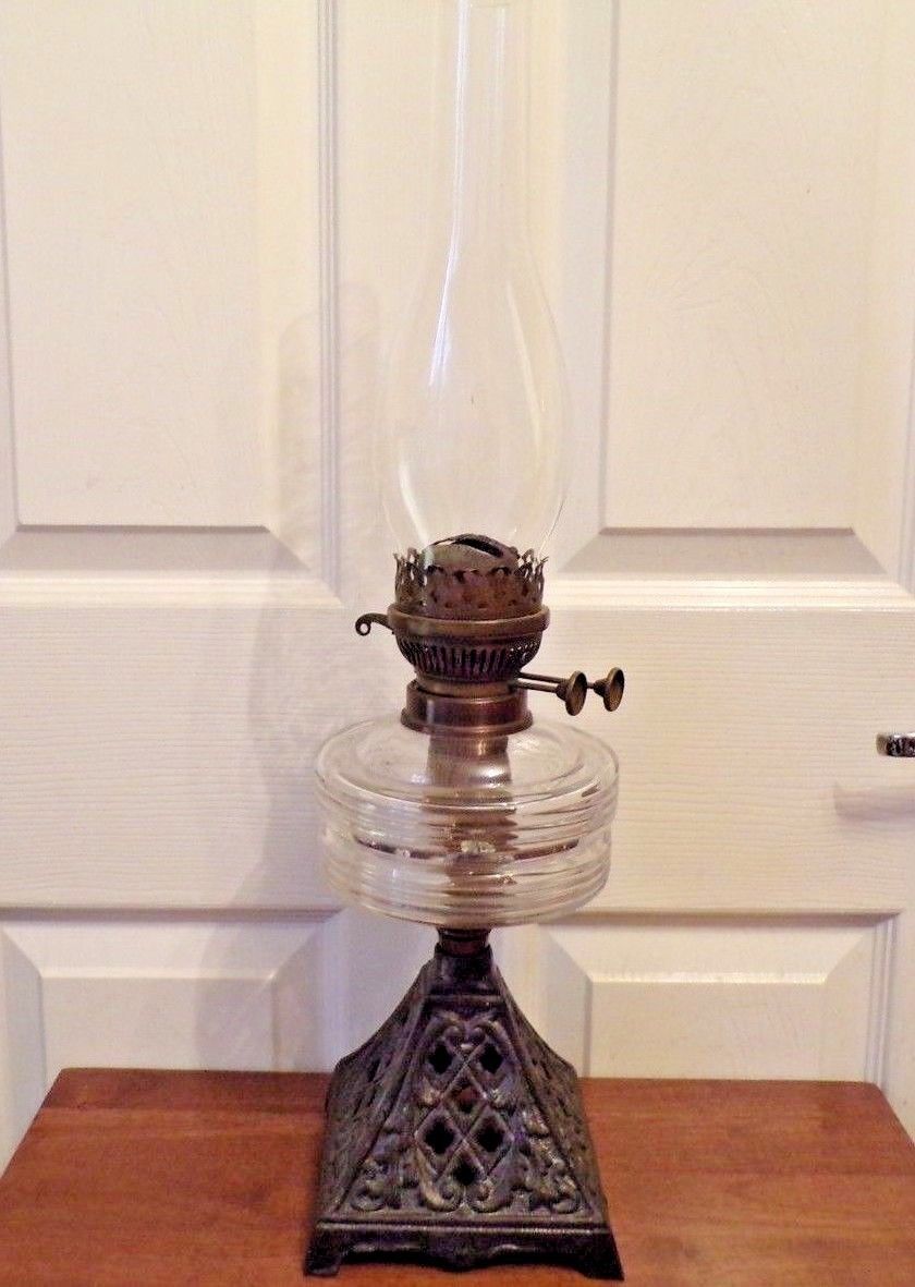 Title (ebay affiliate link): Victorian oil lamp clear glass font cast iron base working order