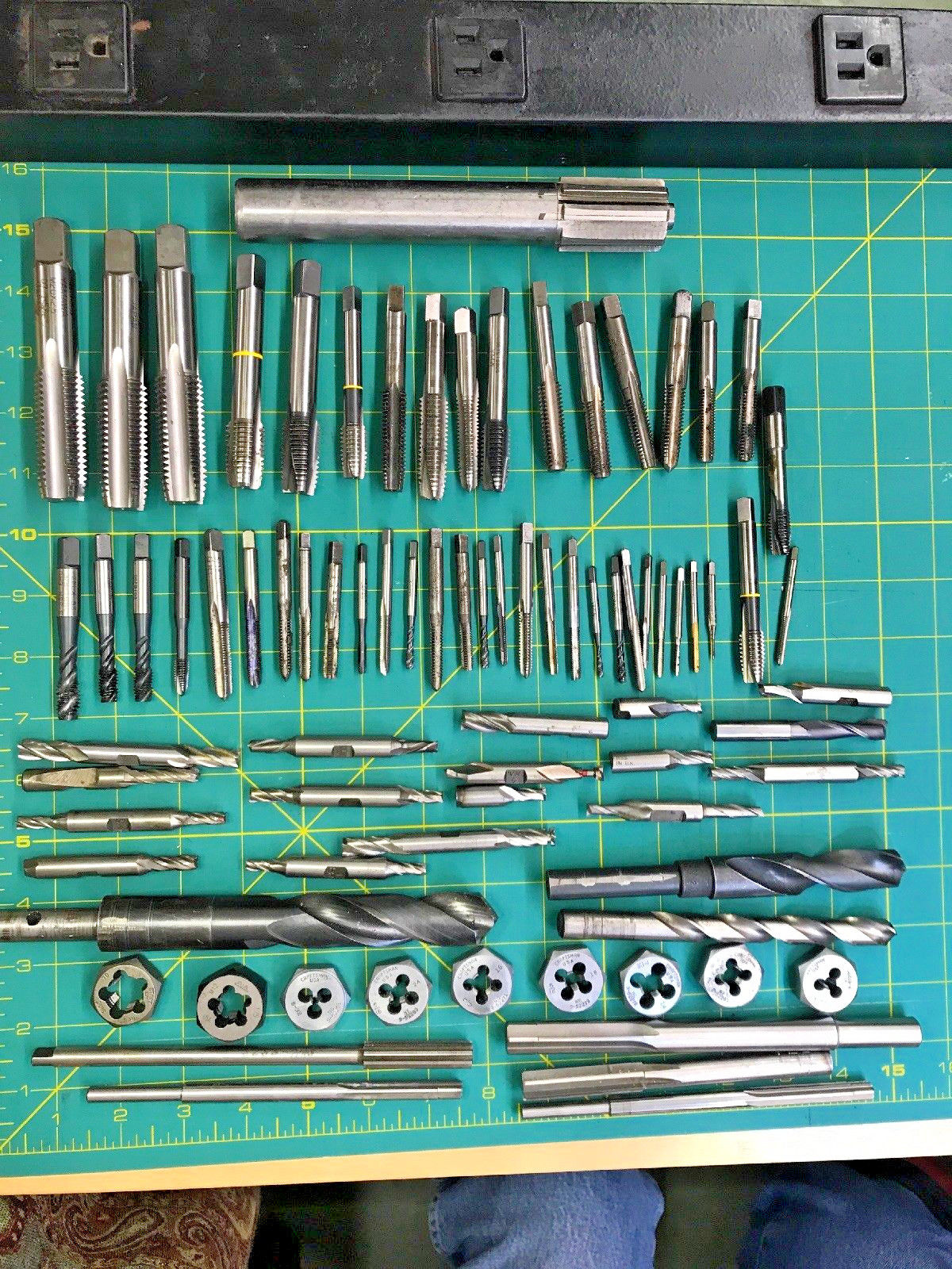 (82)VINTAGE TAPS &DIES,DRILLS,REAMERS,USED,HSS,CARBIDE,GUN,4 FLUTE,STD&METRIC