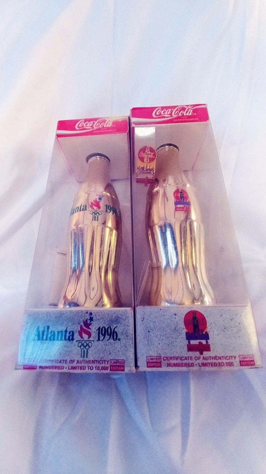 Title (ebay affiliate link): 1996 Atlanta Olympic Coca Cola Commemorative Bottles. Set of 2 Gold bottles
