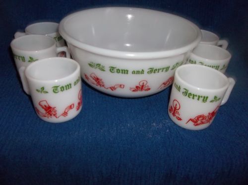 Title (ebay affiliate link): Tom & Jerry 7 Piece Milk Glass Punch bowl Set Hazel Atlas 40''s 50''s 60''s