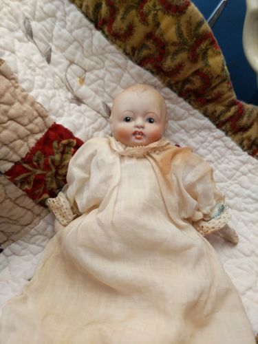 Title (ebay affiliate link): Antique Doll Baby Doll Bisque Open Mouth Teeth Long Gown.