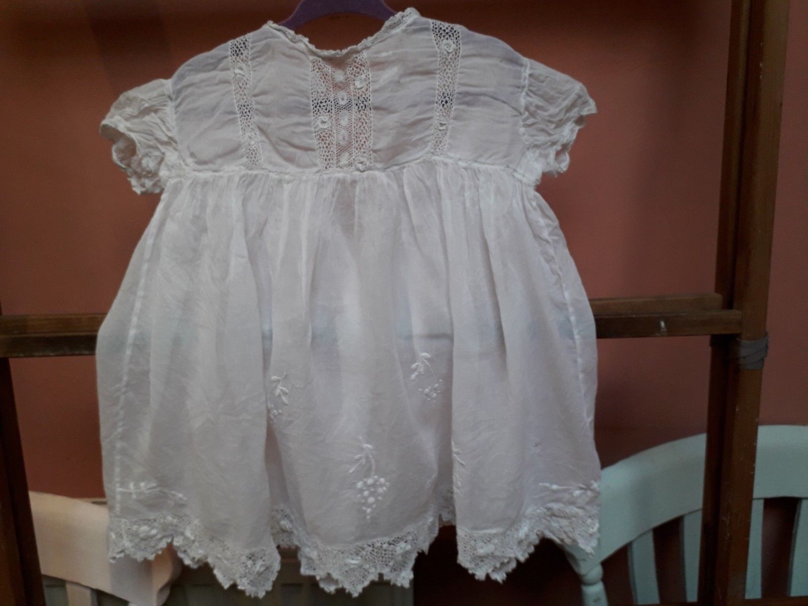 Title (ebay affiliate link): ANTIQUE BABY DRESS HAND EMBROIDERY IRISH CROCHET LACE COTTON DOLL VINTAGE