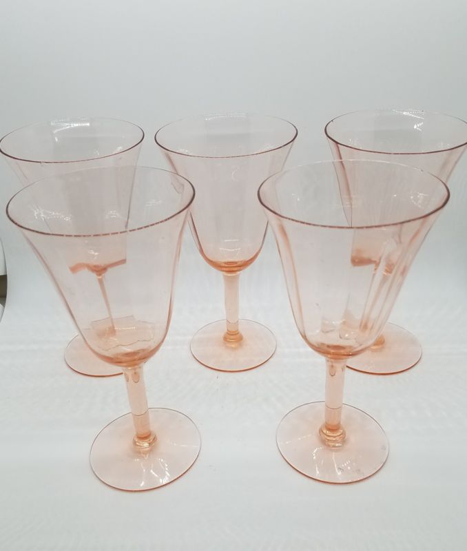 Title (ebay affiliate link): Set of 5 Vintage Pink Depression Glass Wine Glasses
